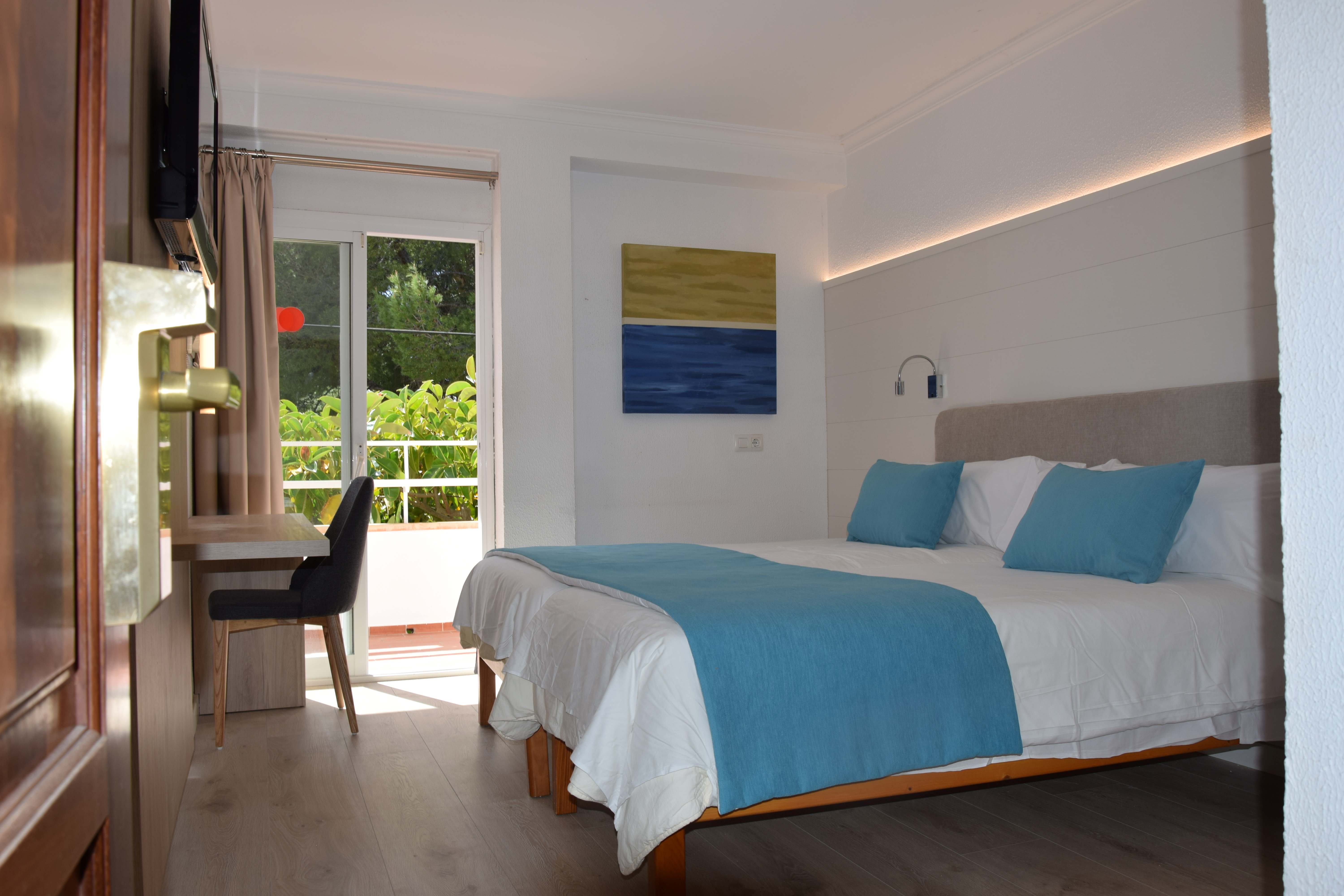 Rooms with two single beds (200cm x 90cm) or double bed (200cm x 180cm) and bathroom with shower. They have a balcony of 6 m2 approx. or terrace of 8m2 approx. equipped with table, chairs and blind.