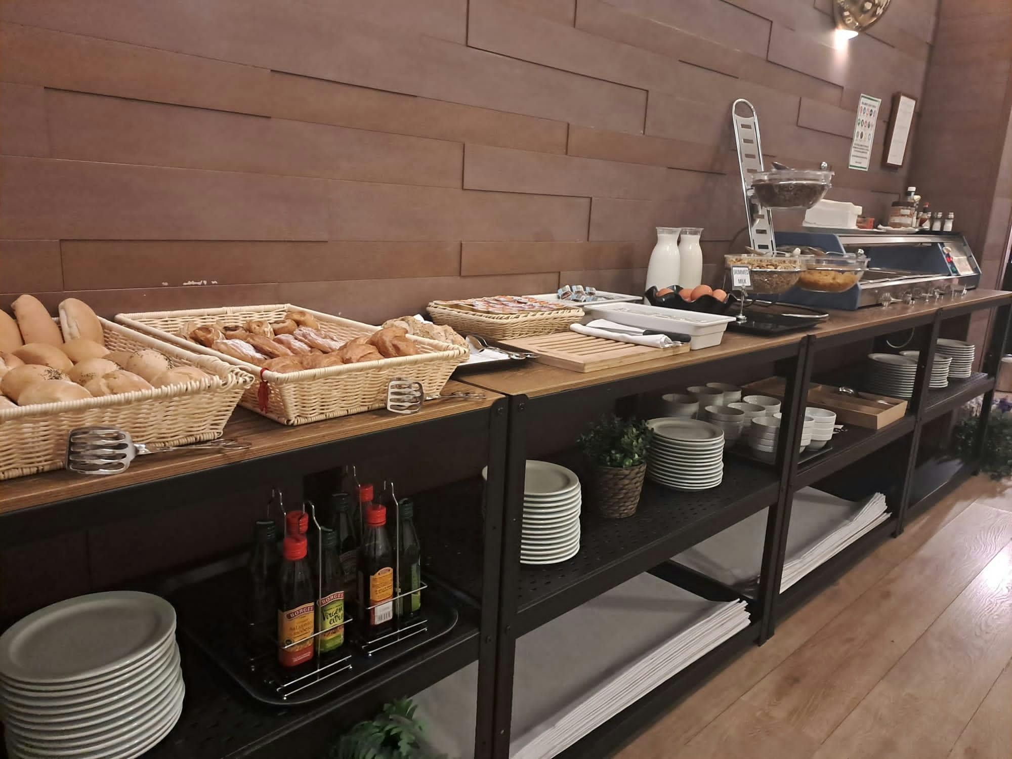 Desayuno estilo continental con una amplia variedad de fruta fresca, panadería y repostería tradicional, cereales, yogures, fiambres y quesos, café expreso, infusiones, zumos, etc…