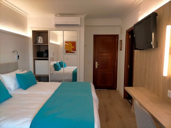 Habitaciones con dos camas individuales (200cm x 90cm) ó cama doble (200cm x 180cm) y baño con ducha. Disponen de balcón de 6 m2 aprox. ó terraza de 8m2 aprox. equipados con mesa, sillas y toldo