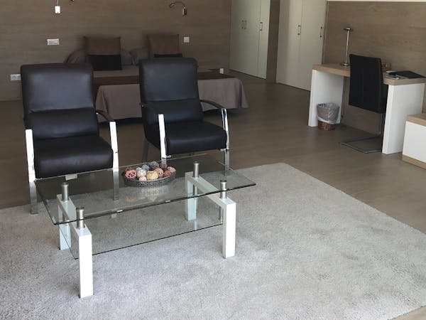 Situadas en la última planta y con magníficas vistas, son habitaciones amplias y modernas con dos camas individuales (200cm x 90cm) ó cama doble (200cm x 180cm) y baño con ducha. Disponen de una zona de estar con butacas, sofá y mesa. Gran balcón de 20m2 aprox. con mesa, sillas, hamacas y toldo.